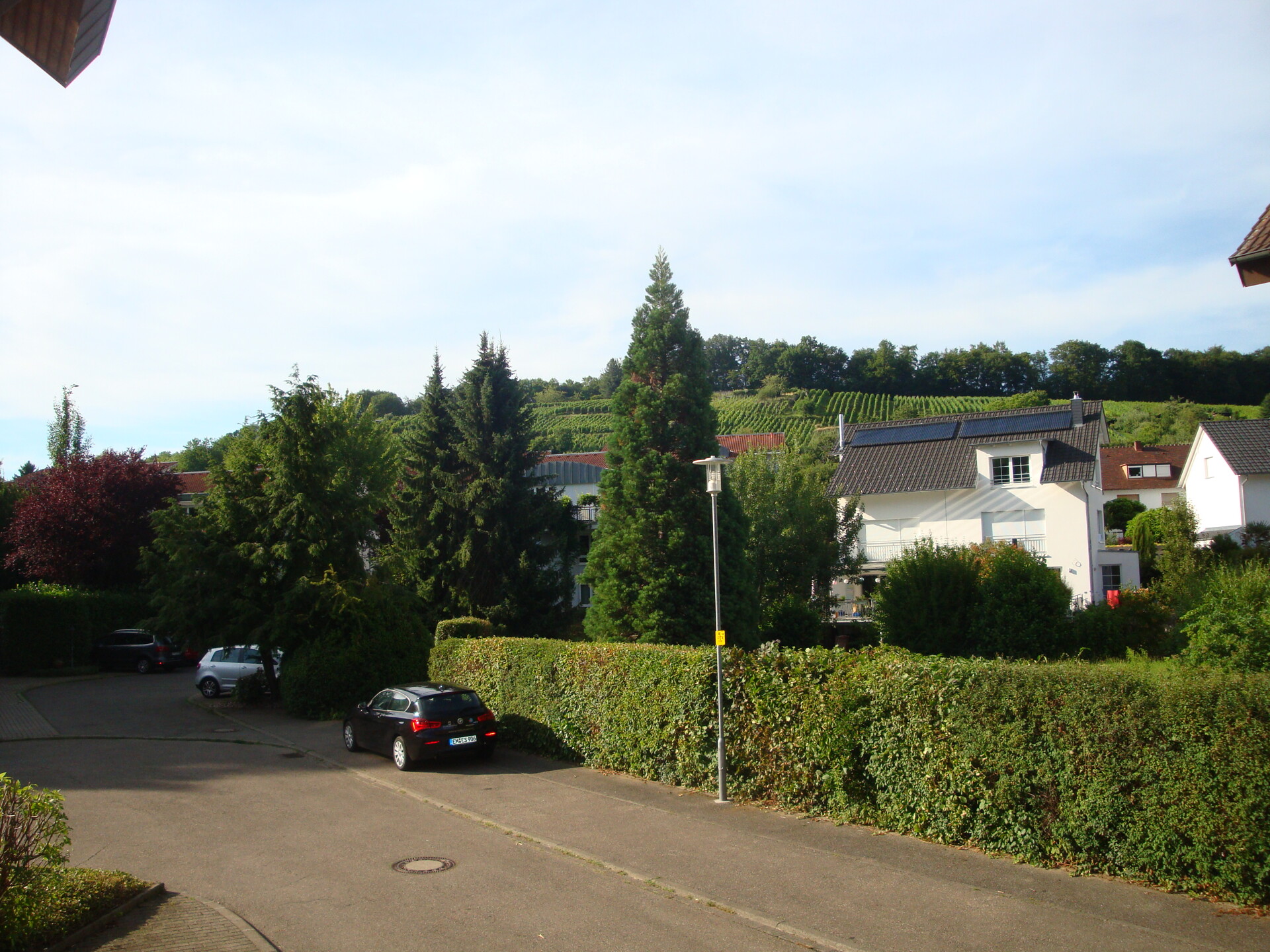 Die Wohnung liegt auf der rechten Seite im 1. DG rechts eines Mehrfamilienhauses mit 13 Wohneinheiten. Das Haus ist sehr schön und ruhig an einem Bach gelegen mit Blick in die Weinberge.