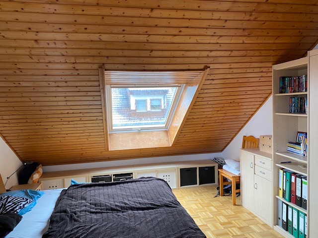 Eine halbe Etage tiefer liegt das 4. Zimmer, ca. 8 m² groß, das sich sehr gut als Büro/Hauswirtschaftsraum eignet. Der Zugang ist über das Kinderzimmer oder direkt vom Treppenhaus aus möglich.