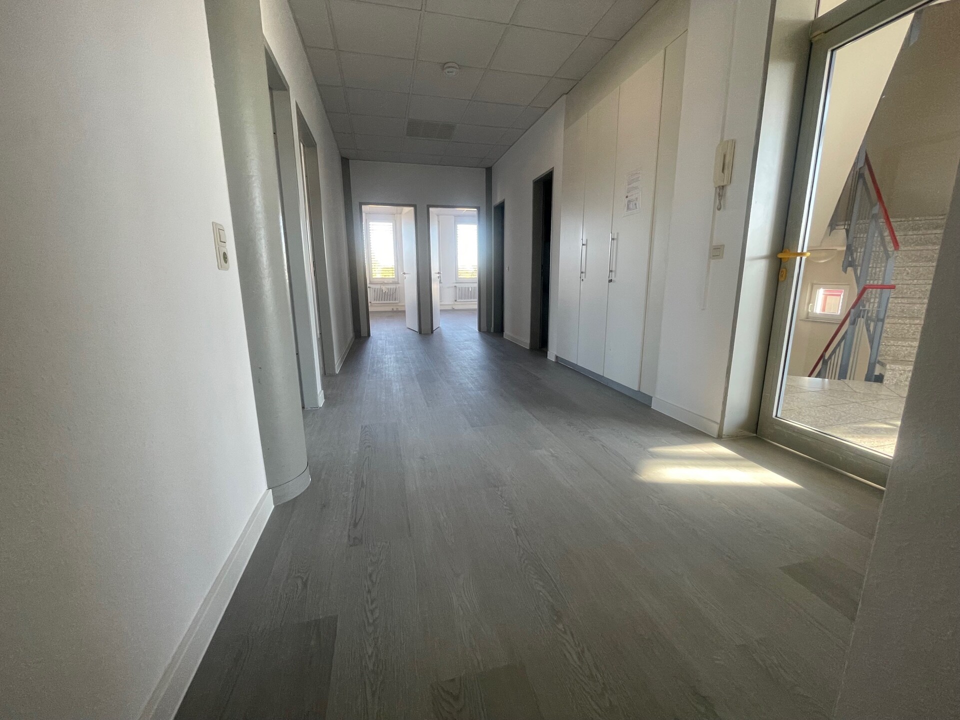 Die angebotene Büroetage überzeugt durch helle, freundliche Räume und eine flexible Nutzungsstruktur. Insgesamt stehen acht Büroräume zur Verfügung, die sich ideal für verschiedene Arbeitskonzepte eignen – von Einzelbüros über Teamräume bis hin zu Besprechungszonen. Durch die großzügigen Fenster entsteht eine angenehme, lichtdurchflutete Arbeitsatmosphäre, die konzentriertes Arbeiten und Produktivität fördert.